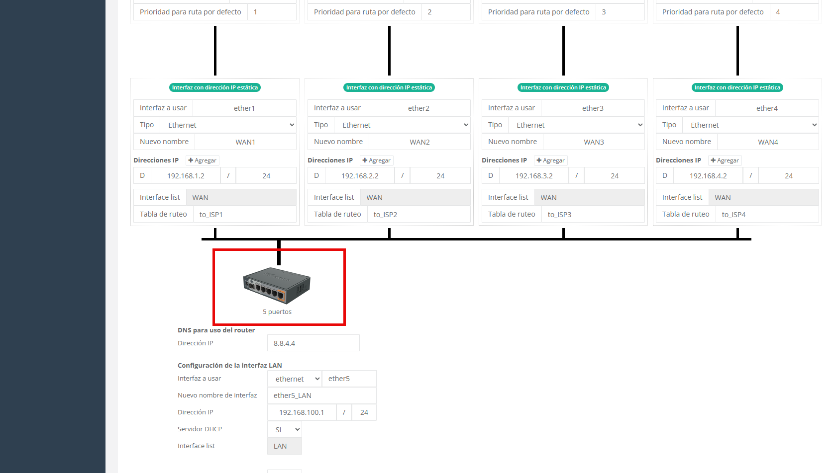 Buen día Nanotic, si hablas del generador de balanceo de carga, la imagen que aparece es un ejemplo del router en el que se podría instalar, lo importante es que sea un router Mikrotik y en tu caso solo deberás asegurarte que el router donde vas a instalar la configuración tenga los 10 puertos que indicas.