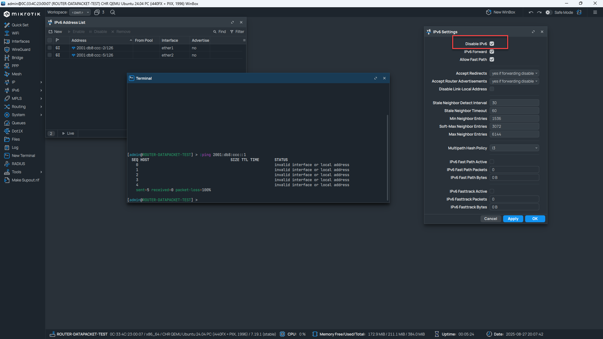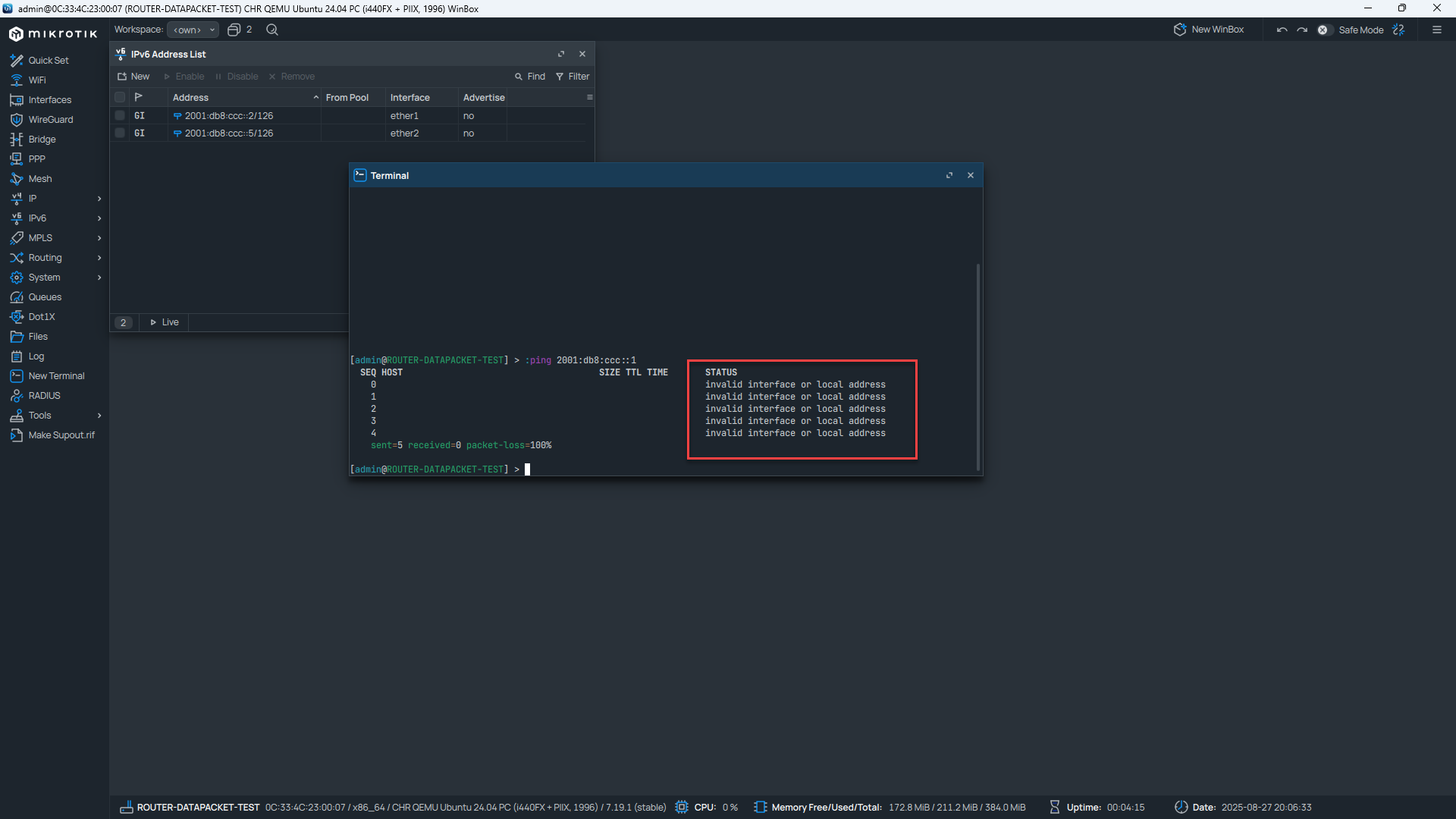 Esto ocurre por que está deshabilitado IPv6 en RouterOS